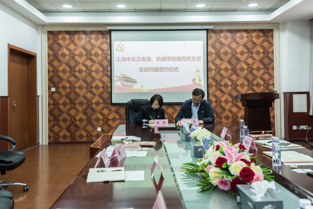 经过较长时间的接洽,在双方深入了解的基础上,11月12日下午,上海中车艾森迪海洋装备有限公司党支部书记、副总经理严允,副总经理欧阳典贵等一行5人来到上海电机学院机械学院,与机械学院第四党支部签订了共建协议。