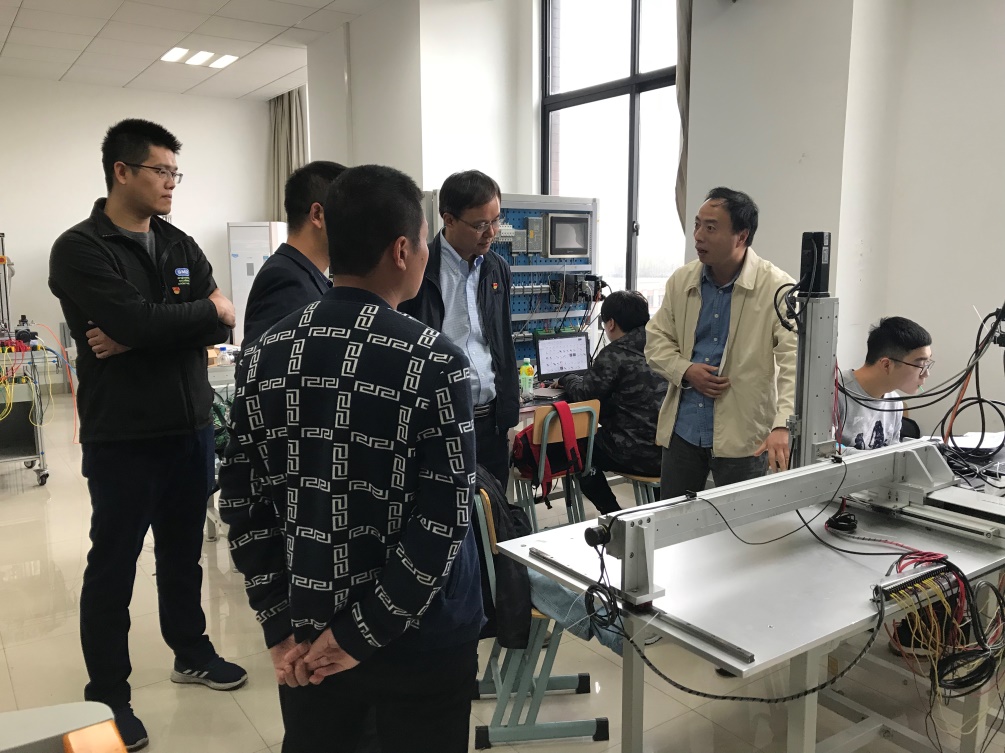 上海中车艾森迪海洋装备有限公司一行5人首先参观了机械学院的实验室,了解了学院的科研条件与研究生培养情况,重点参观了机械电子工程专业机电综合、机器人实训实验室,机械电子工程系教师汪烨详细介绍了机械电子工程专业在应用型人才培养实验教学改革与实验室建设方面所做的探索与教学实践。在汽车实验室,“智能车”社团学生正在开展科创活动,演示了在专门设计的跑道上自动识别道路行驶过程,实验室教师严屹宏介绍了“智能车”社团学生科创活动开展情况以及学生取得的成绩。