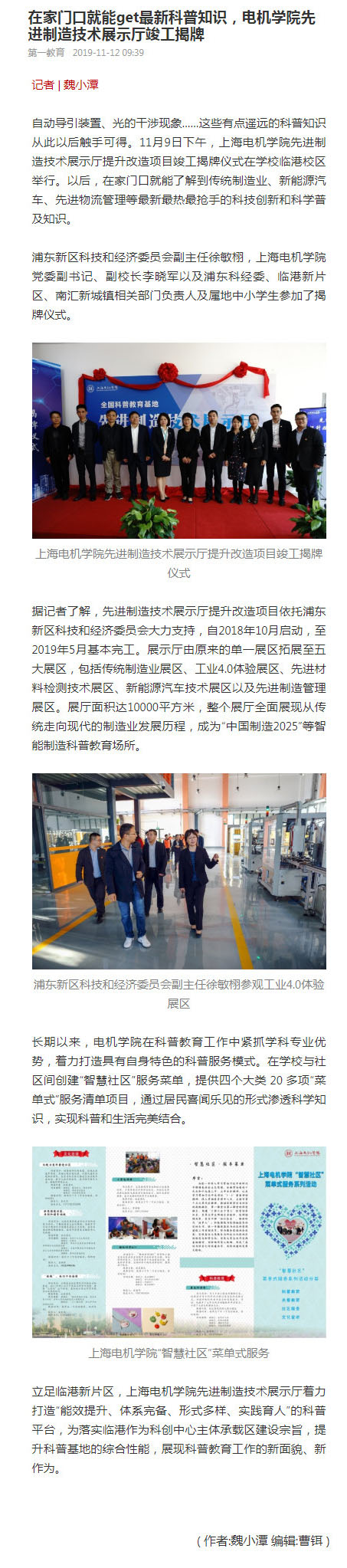 【第一教育】在家门口就能get最新科普知识,电机学院先进制造技术展示厅竣工揭牌