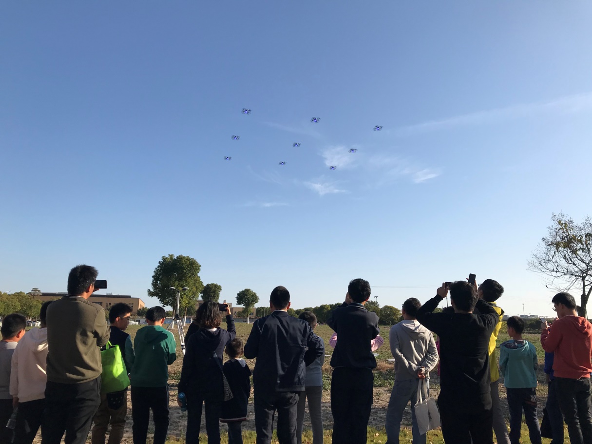随后上海翰动无人机公司技术人员准备了精彩的无人机编队表演,同学们对此展现了浓厚的兴趣,看着无人机编队在空中做出炫酷的动作无不发出赞叹。