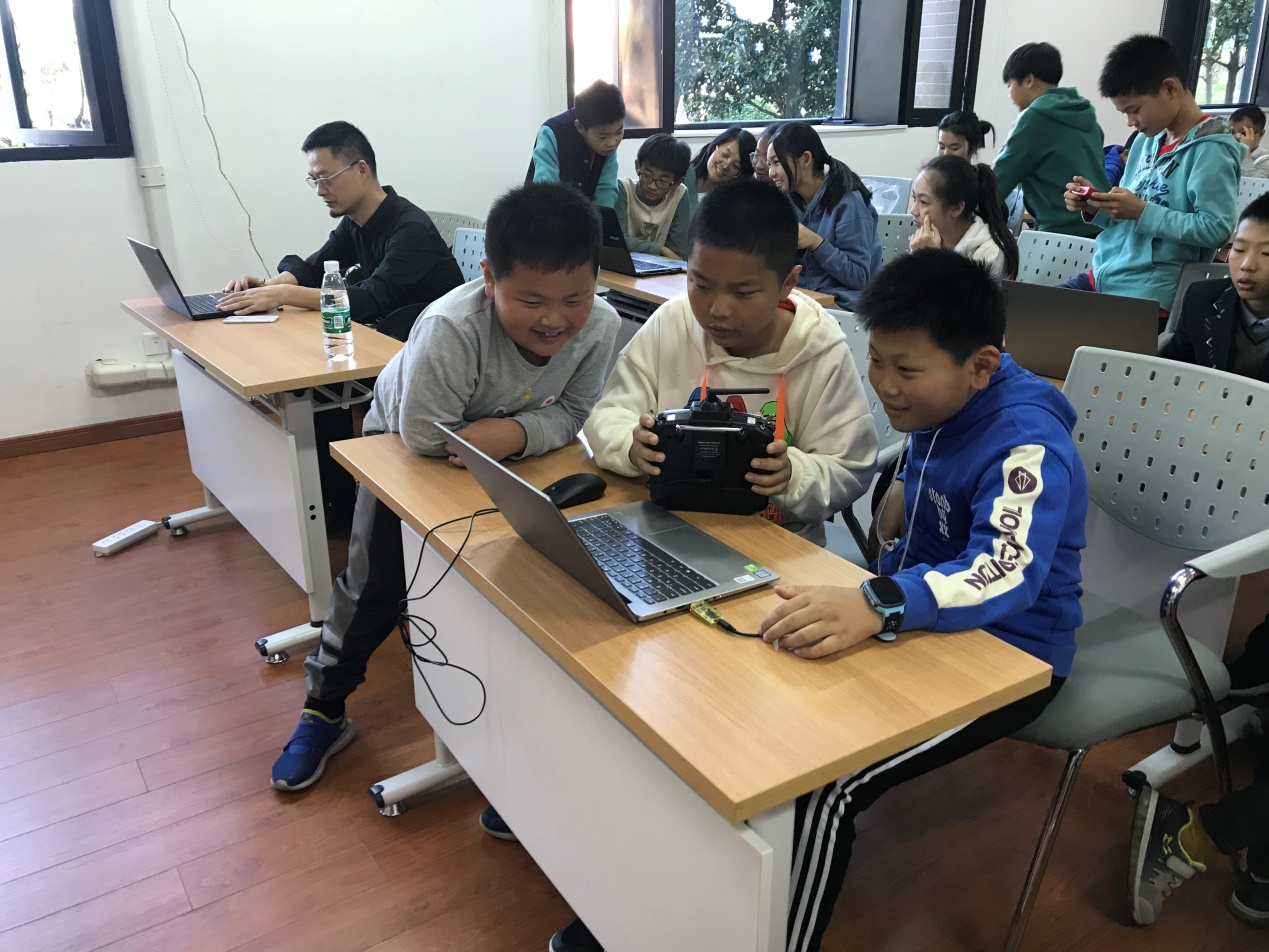为了与社区共享资源,服务临港新片区,经过长期沟通协调准备,11月16日下午,机械学院第二党支部与上海翰动浩翔航空科技有限公司合作为临港中小学无人机爱好者举办了一次无人机模拟训练与无人机编队飞行科普活动。公司技术人员准备了一堂精彩的无人机科普课,讲解绘声绘色,激发了学生的学习热情,积极参与互动。在无人机模拟飞行训练过程中,机械学院第二党支部党员及入党积极分子一对一辅导,他们给中小学生提供电脑,提前安装好模拟软件,帮助他们熟悉模拟操作过程。