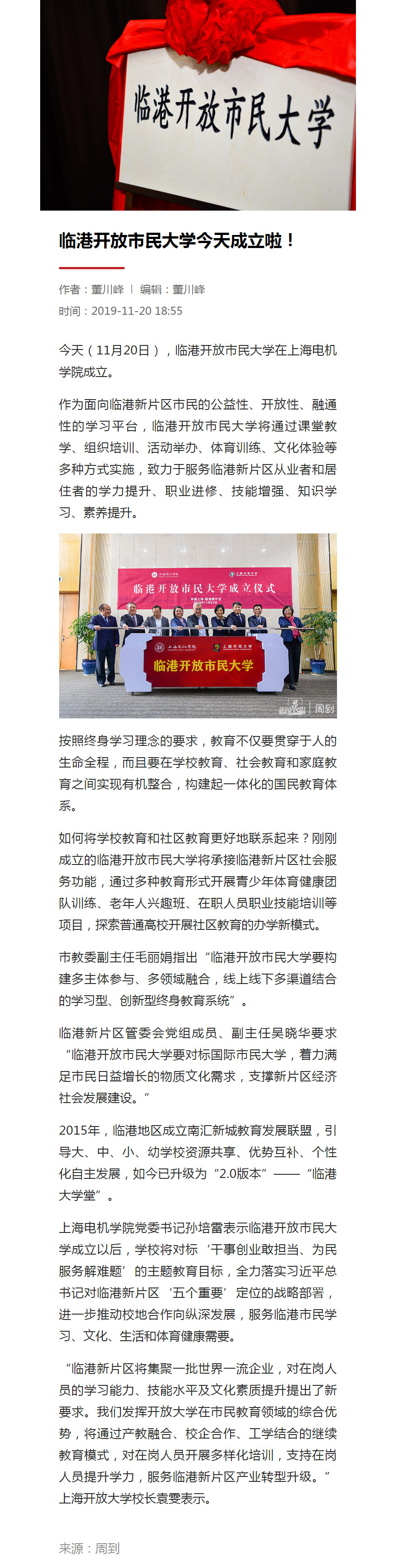 【周到】临港开放市民大学今天成立啦!