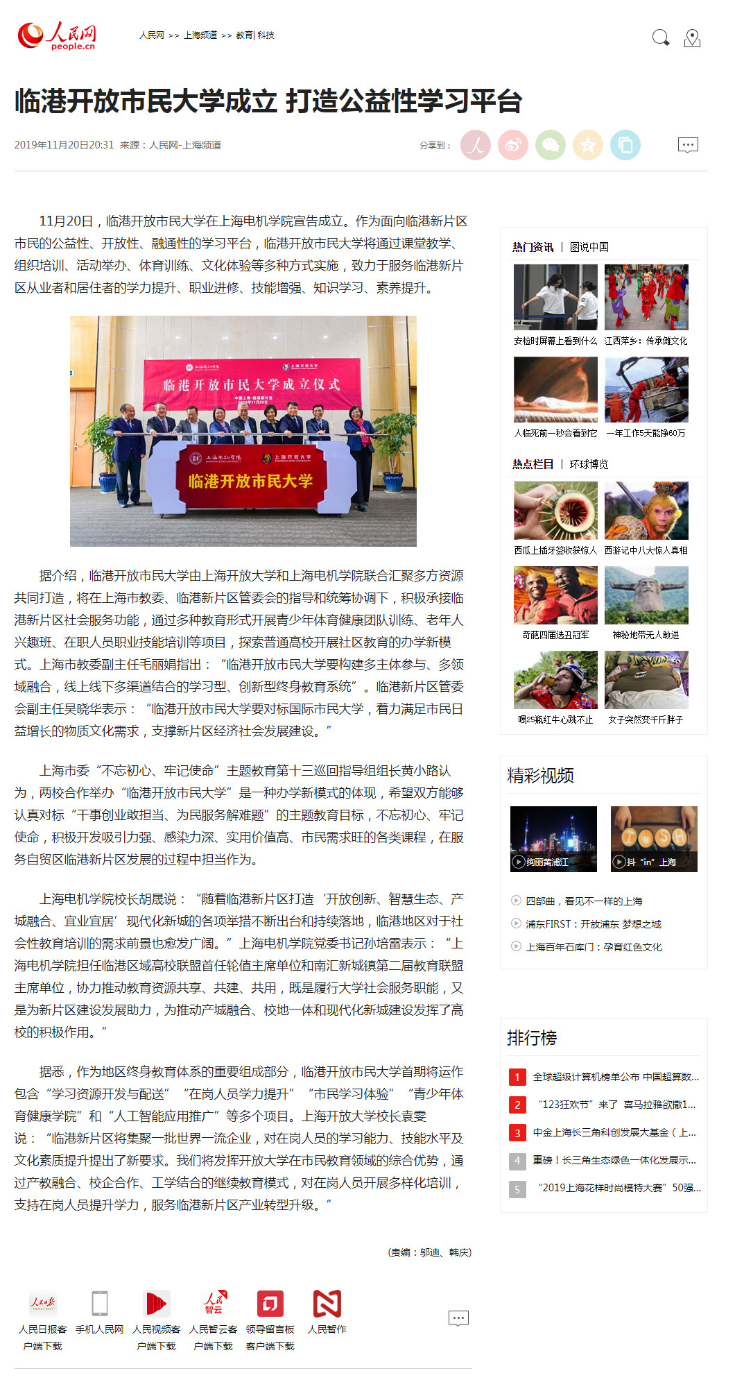 【人民网】临港开放市民大学成立 打造公益性学习平台