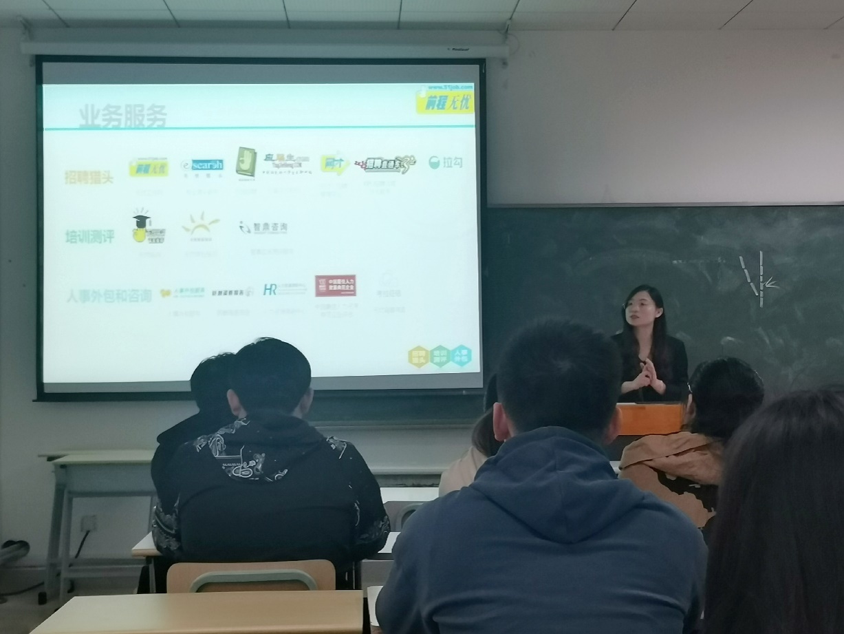 为提供应届毕业生广阔就业交流平台和企业招聘信息,2019年11月20日下午14:00在商院305教室召开前程无忧(51job)公司招聘宣讲会。前程无忧(51job)公司的销售主管单榕榕女士是此次宣讲会的主讲人,招聘岗位为管理培训生(销售部)。