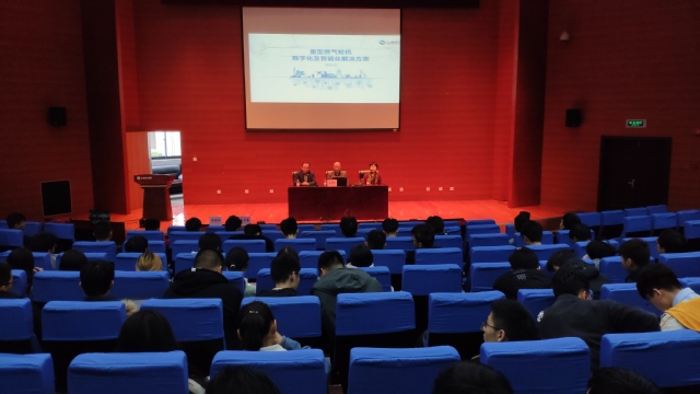 袁建华从上海电气燃机智能化发展背景与理念开始,向同学们介绍了燃机电厂的智能化升级之路,结合电气智能发展的技术基础、电气燃机智能化发展理念以及上海电气燃气轮机智慧电厂的建设历程等方面展开讲述;在接下来讲述上海电气燃机智慧电厂的综合解决方案的时候,袁建华表示,上海电气燃气轮机智慧电厂建设之路,也是主机设备设计者与发电企业互利共赢之路,为用户定制最合身的智慧平台!最后,袁建华向同学们介绍了上海电气数字化智能化产品的组。他还结合上海电气集团通过种努力,掌握核心技术,成为国内行业的领先者的实例,激励同学们要好好学习,刻苦钻研,把真正的技术掌握在自己的手里。