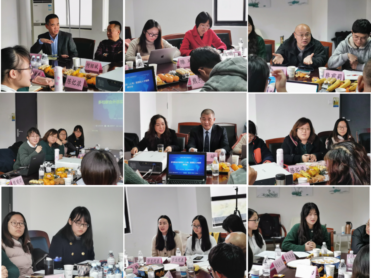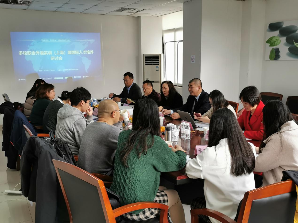 外国语学院着眼于学校办学定位和发展要求,积极推进和落实学生实习实训,致力于以赛促学,以训促学,传播中国优秀文化,培养卓越的外语应用型人才,11月28日,外国语学院于文理楼413会议室召开“多校联合外语实训(上海)暨国际人才培养”研讨会。上海世语翻译实习实训基地董事长曹斌、经理陈玲,上海海事大学外国语学院副院长何绍斌,上海理工大学外语学院教授王勇,上海应用技术大学外国语学院徐旸老师,上海海洋大学外国语学院英语系主任朱骅教授,我校外国语学院德语系陈忆浓老师,英语系副主任左淑华出席会议,上海体育学院、上海师范大学、上海电机学院等参训学生代表参加了研讨会,会议由外国语学院院长张玉双教授主持。