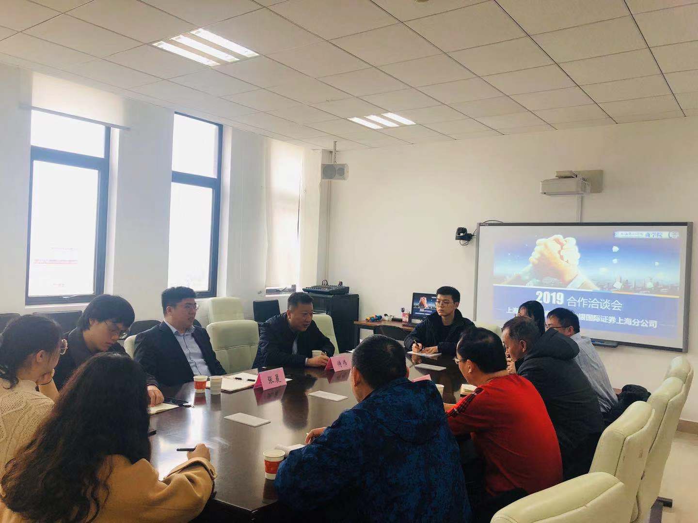 2019年12月19日下午,商学院与中银国际证券上海分公司在商学院512举行合作洽谈会。院长富立友,商学院党委书记项军,部分专业老师以及金融专业学生代表出席会议,会上邀请到中银国际证券上海分公司总经理张晨,上海荣乐东路证券营业部总经理侍伟。