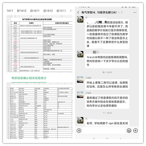 2月初学院疫情防控工作组即要求全体班主任通过电话以“声对声”的形式与每一位同学及家长进行沟通,尤其是针对毕业班的学生更要了解其就业的准备的现状和需求并告知相关的就业咨询渠道。考研初试成绩发布以后第一时间要求班主任全面排摸每一位报考同学的情况。在此基础上建立了电气学院2020届毕业生情况梳理数据库,针对学业困难和就业困难学生加强学业帮扶和就业指导,为进一步做到“一生一策”,精准帮扶做好铺垫。