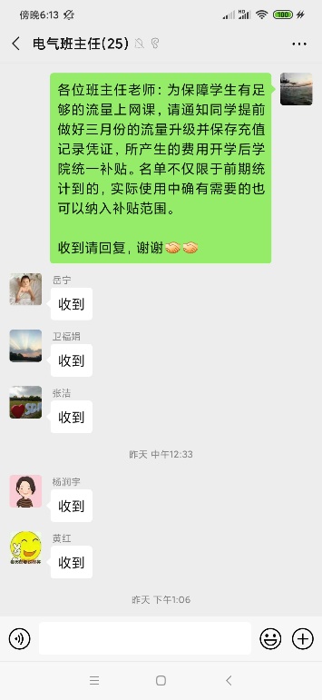 在前期的排摸中,同学们对开展网课教学反映最多的是网络拥堵和流量问题。据统计,学院2008名本科生中有199名同学存在网络流量和网速问题。针对这部分学生,考虑到个别学生家中无宽带,或身处偏远地区,或滞留在外,学院对他们发放手机流量专项补贴,支持学生网课学习顺利开展。