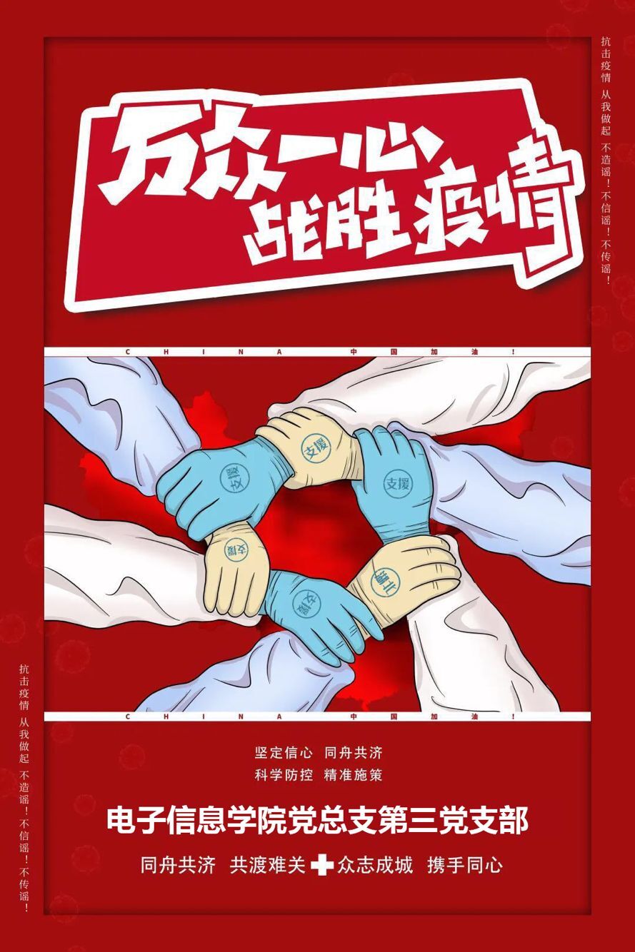 “疫”不容情,爱有温情。林明洁主动参加线上的志愿者团队,负责团队的宣传工作,设计招募志愿者的文案海报,撰写和疫情相关的文章和记录志愿者的工作情况等。“青春上海”公众号发布志愿者招募信息第一时间,苏钰清便报名参加了上海抗疫志愿者,并将这一消息转发给身边同学,呼吁更多同学参加。王嘉欣在疫情防控期间,发挥自己的特长,在微信公众平台“电机后勤”及时发布学校后勤保障中心的信息动态和工作情况,发掘典型事迹,向我们展现防疫一线人的日常。谭明敏在疫情中向上海市青少年发展基金会针对此次疫情进行了捐款。支部很多同志积极传播正能量,为身边的人宣传防疫的正确方式,并通过设计海报传递爱心、助力抗“疫”。贾宇梁则在疫情期间手写祝福,以书法的形式传播温暖与爱。