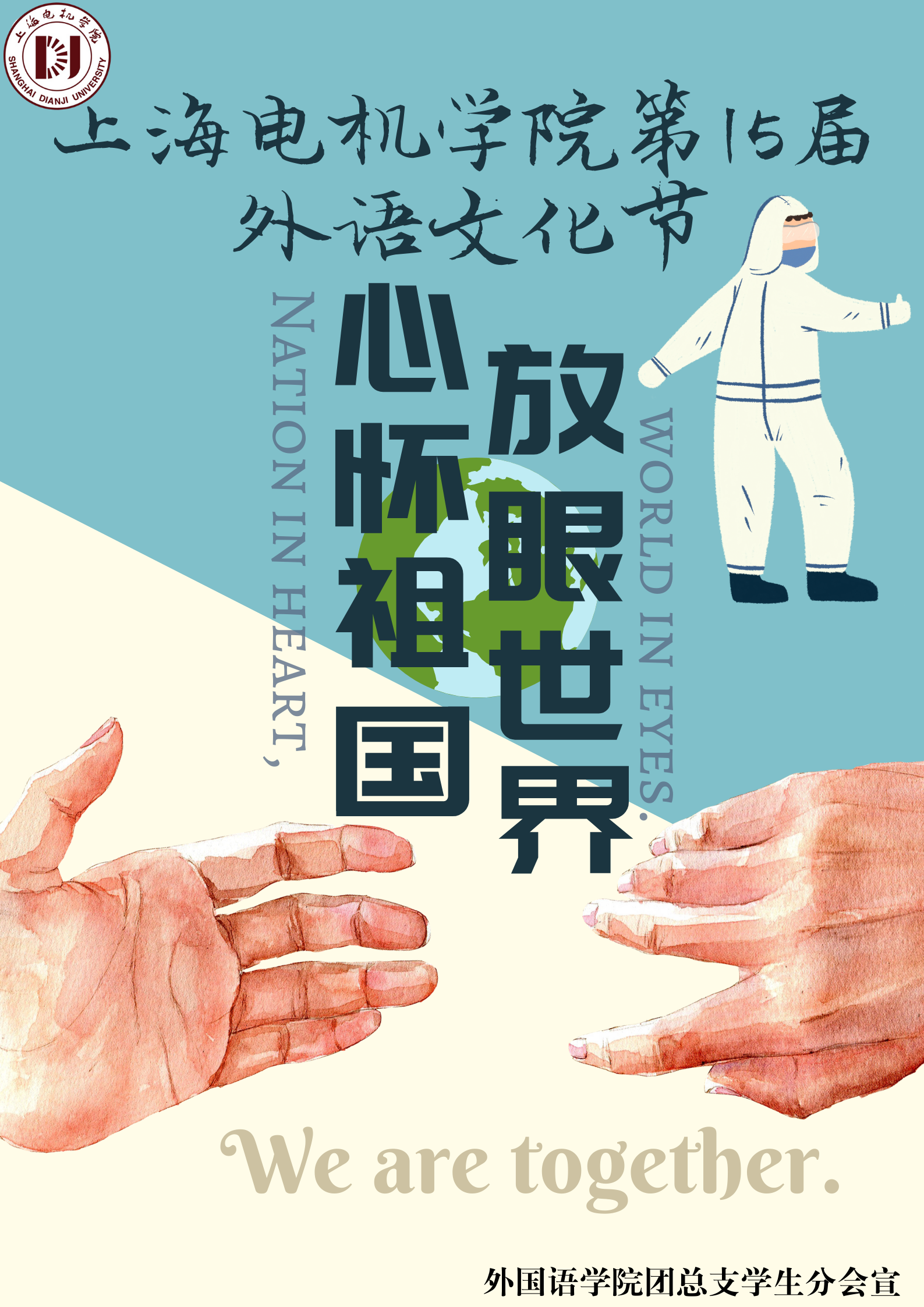 外国语学院本届外语文化节的主题是“心怀祖国,放眼世界”(Nation in Heart, World in Eyes)。在抗击疫情的特殊时期,我们将外语节部分活动以线上的方式鼓励同学们参与,如翻译大赛、简历大赛等,让同学们在家也能感受异国文化的蓬勃魅力。为给本届外语文化节进行线上预热,外国语学院特制作一则抗击疫情的宣传视频将外语文化节与当下抗“疫”情局势紧密联系起来,待春暖花开时,与大家相遇。