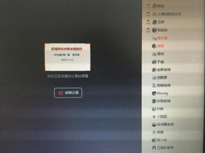 2020年3月中旬,外国语学院党总支依托支部微信群和QQ群,以线上“自学+讨论”的方式,组织62名师生党员开展“线上”主题党日活动,确保疫情防控期间,防控工作不松懈,党员学习不阻断。