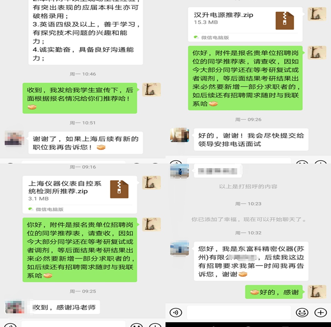 辅导员冯兆红欣喜的发现,有些中小企业对于学院主动出击,精准对接的方式非常赞同。中小企业表示这种沟通方式更便捷、更有效,尤其是对用人需求不多的单位,避免了他们参加线上统一招聘的繁琐流程,又能提供专业契合度高的毕业生以供用人单位进行再次筛选和面试。