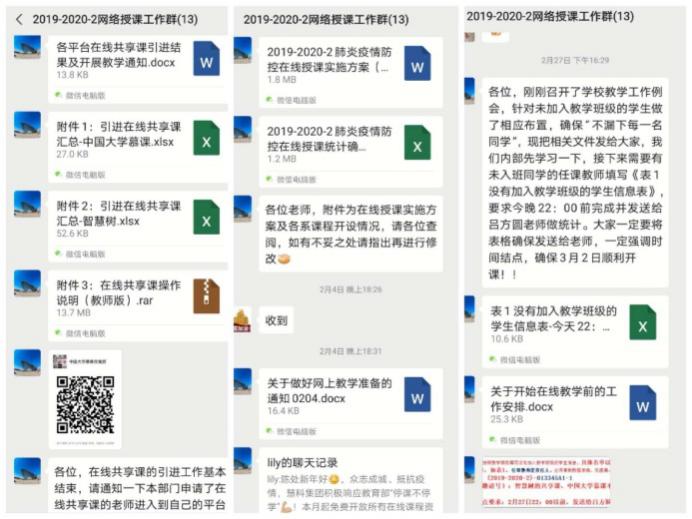线上教学试运行期间,学生条线全力配合教学条线做好各类课程入群入班事宜,每天及时督促相关学生,遇到问题及时反馈,帮助解决。线上教学开始后,迅速组织学习小组,线上共享学习资料,及时帮扶有困难同学。