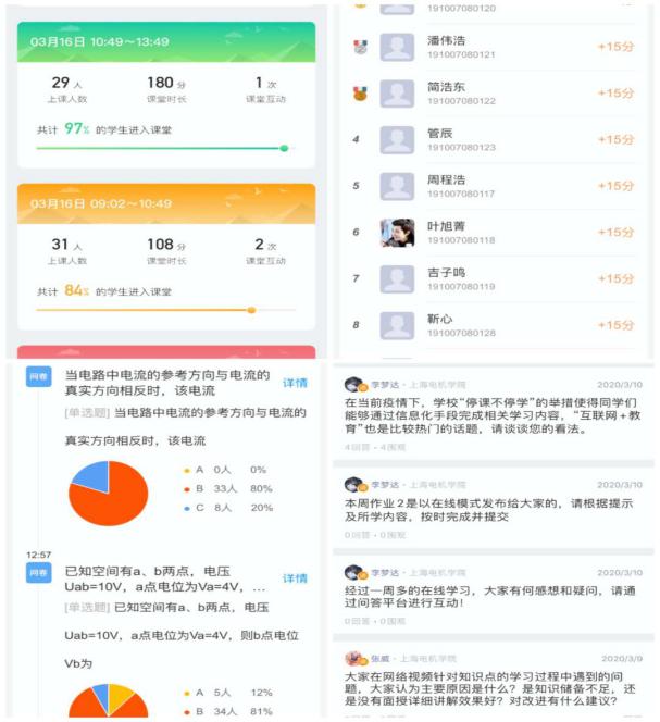 经过二十多天的准备工作,线上授课模式基本形成。电气学院共有在线课程158门次,授课教师79人,线上学生7134人次。结合不同教学资源及课程特色,教师通过超星、智慧树、中国大学慕课等多个教学平台,采用完全自建课、引进翻转课、在线共享课、直播教学课等多种教学形式进行远程授课,3月2日迎来线上教学第一课。