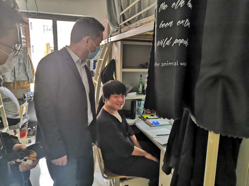 会后,材料学院直属党支部副书记刘志超老师和辅导员老师前往宿舍,关心材料学院的留校学生,了解其在疫情期间的学业和生活情况,告诉学生要合理安排自己的时间,不能因为疫情的长期休息就混乱了自己的作息,要努力学习,加强锻炼。