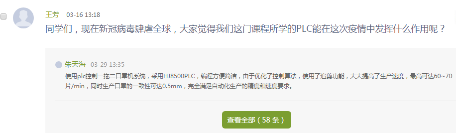 录播结束后的讨论环节是师生互动的重要契机,面对面交流不仅让学生有 “在场”的学习感觉,而且老师还可以充分地嵌入国家社会等热点问题与学生的思想相互碰撞,从而产生思想共鸣的效果。电气学院第二党支部的王芳老师任教的《现代工业控制系统》课程是自动化专业的专业课,是学时学分最高的课程,同时也是自动化专业培养方案的自动化系统工程设计方向中的核心课程。王老师在线上教学中定位价值观培育和塑造,通过“基因式”融入,将思政教育贯穿于教育教学全过程。在王老师的课程中除了传授工业控制的专业技术外,更侧重让学拿到生了解我国智能制造工业控制系统领域的发展状况,我国在全球智能制造工业控制系统的领域所处的位置,发展的前沿以及技术上的欠缺,从立德树人的角度来传授专业知识,鼓励学生们学习“工匠精神”,注重细节,一丝不苟,做到精益求精,以专业技能知识为载体加强大学生思想政治教育,最大限度发挥课堂主渠道功能,扭转专业课程重教学、轻育人的情况。她结合目前线上授课的特殊情况,充分利用课程网络平台的讨论环节,巧妙地寓社会主义核心价值观的精髓要义于教学之中,在引人入胜、潜移默化中实现教育目标。