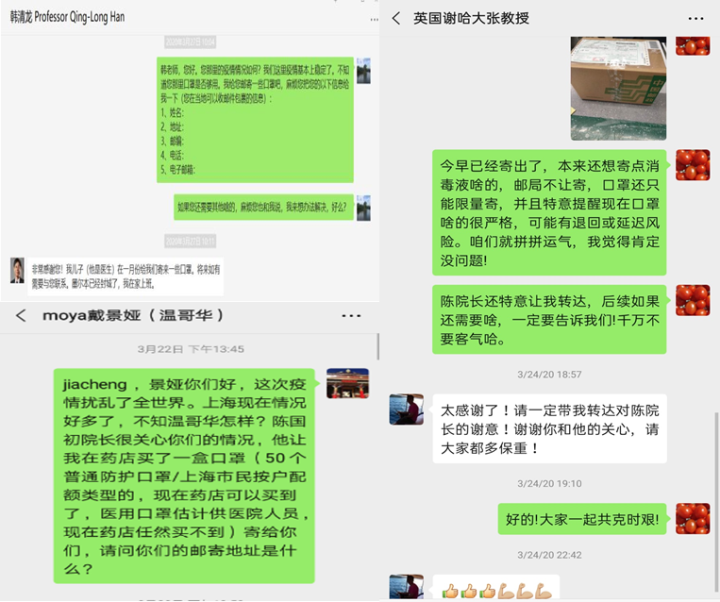 在得知部分海外师生口罩物资缺乏后,学院紧急筹措了口罩等防疫物资,于3月陆续邮寄给在美国、加拿大、英国、德国、奥地利等国家的师生,近日师生们已陆续收到物资。