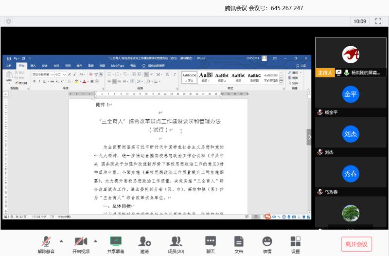 “三全育人”背景下,如何发挥各岗位的育人功能?实验课如何发挥实践育人的功能?行政坐班老师如何提升管理服务育人的水平?“新思政观”引领下,专业建设的育人目标如何定义?课程思政目标该如何规划?在前期学习上海应用技术大学邱杰老师的报告《盐溶于汤 守正创新 探索应用型高校课程思政建设有效模式》后,如何将邱老师提出的应用型人才思想政治核心素养的“四梁八柱32个观测点”与专业育人目标相结合,切实应用到自己的工作中?课程思政校级教学团队、课程思政教育教学改革项目如何申报?对于这些问题,5月15日下午机械学院各学习小组在支部书记的带领下以网上会议的形式开展了大讨论。