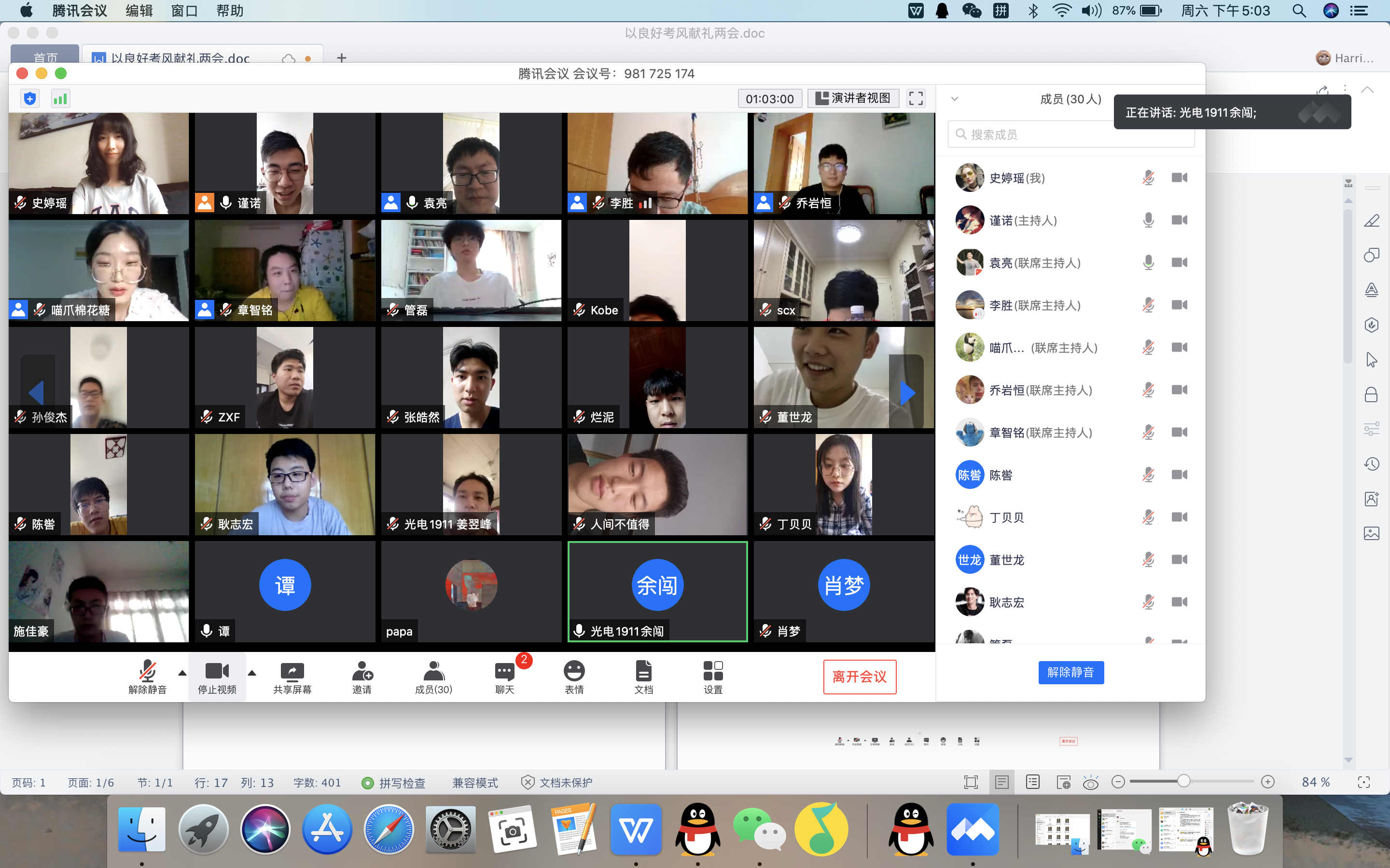 2020年5月23日晚,文理学院光电1911班师生在线开展了视频会议,在庆祝“两会”顺利召开的同时,以PPT、视频等形式分享展示了疫情期间发生在我们身边的感人故事,在此基础上,班主任为即将到来的期末考试开展了诚信教育,希望同学们营造优秀的考风,养成自信自立自律的品质,并能在这次特殊的期末考试中展现文理学子的精神风貌。在班会尾声,全班同学云签署了一份诚信考试承诺书,承诺以优秀的考风献礼“两会”。