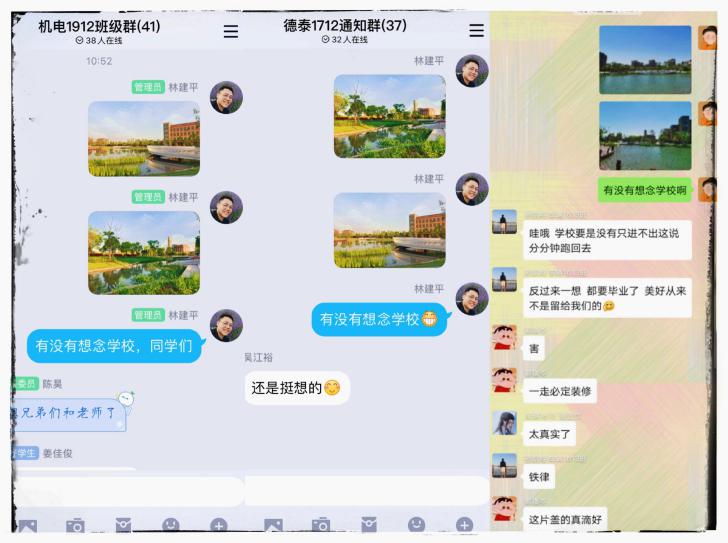 面对同学们的失落,机械学院的辅导员们积极思考如何才能弥补同学们的遗憾。有些学生担心自己寝室情况,辅导员便帮他们检查门窗关闭情况,并拍照发给学生;疫情期间辅导员老师们为学生回寝室取物60余次;有些学生表示怀念校园美景,辅导员们便拍摄照片发到班群中与学生共享……
