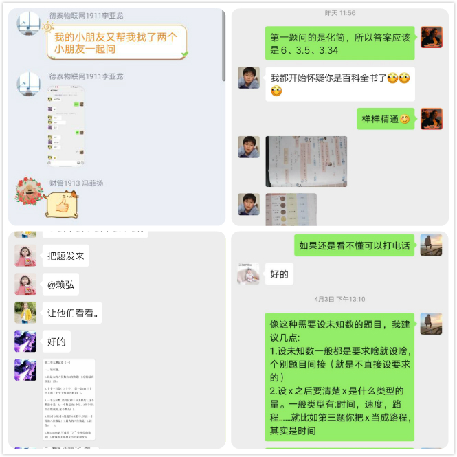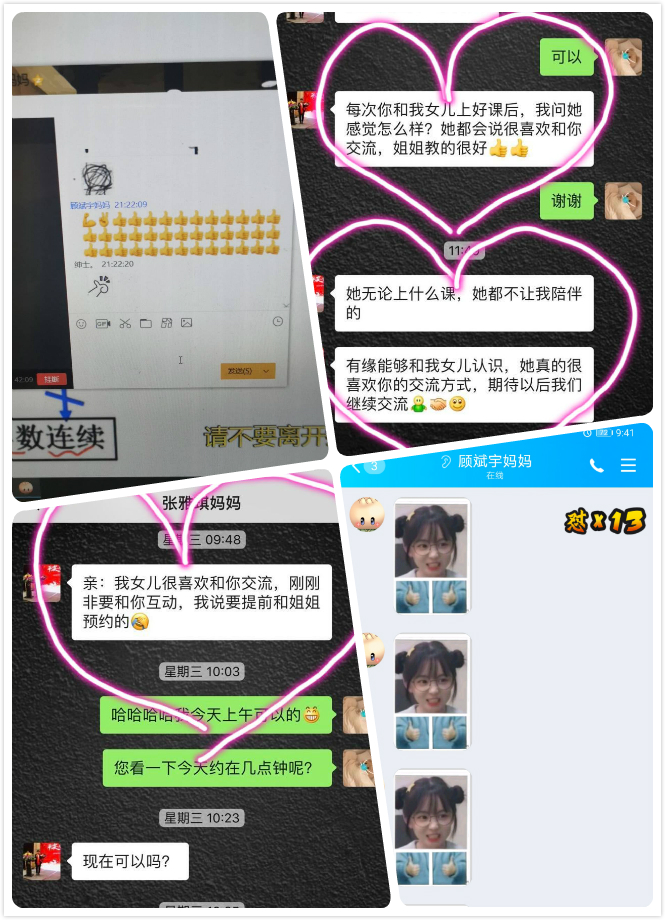 志愿者们不仅为学生们辅导功课,也和学生、家长建立了良好的友谊。家长们对志愿者连连夸赞,各种表情包、文字花式点赞。