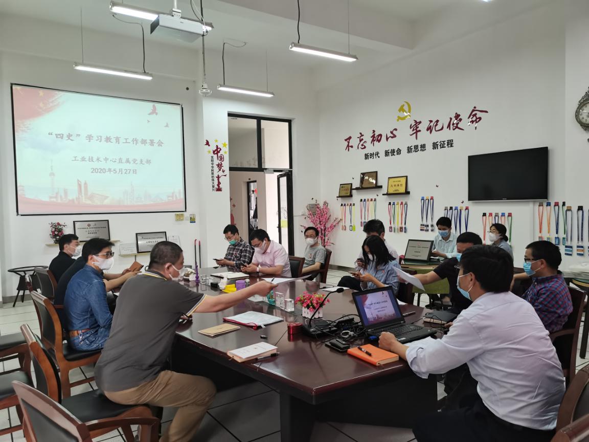 为深入贯彻落实党的十九届四中全会精神、习近平总书记考察上海重要讲话精神,建立健全“不忘初心、牢记使命”长效机制的重要部署,贯彻市委、市教卫的工作部署,根据校党委《关于开展党史、新中国史、改革开放史、社会主义发展史学习教育的实施方案》的通知要求,工业技术中心直属党支部于5月27日召开了“四史”学习教育动员部署会。会议由直属党支部书记吴军民主持,中心全体党员和积极分子参加会议。