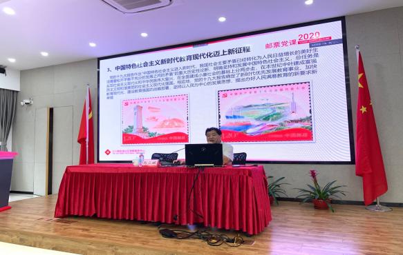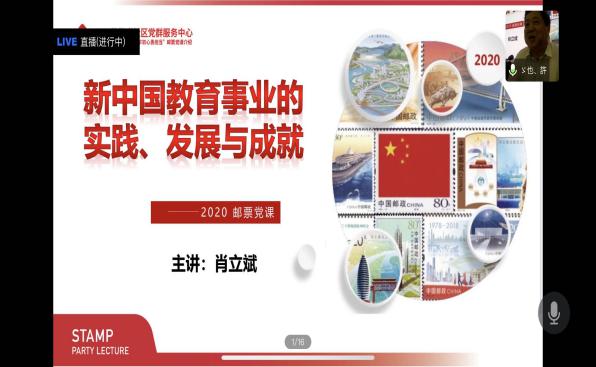 参观结束后,高职学院党总支全体党员聆听了上海市集邮协会青少年工作委员会委员、闵行区职工部协副会长肖立斌做主题为“新中国教育事业的实践、发展与成就”的党课。该党课是江川路街道社区党群服务中心的品牌项目——“邮票党课”的内容之一。“邮票党课”自2017年创立以来,广受好评。今年“邮票党课”的主题是“学好‘四史’明使命,守牢初心勇担当”。此次党课采用“线上+线下”的方式进行,“线上”在腾讯会议室,“线下”在党群服务中心会议室。肖立斌会长作为一名老教育工作者,结合一张张富含历史底蕴的邮票,讲述了新中国教育事业的发展与成就,贴近实际、内容丰富,引起了党员教师们广泛的思想共鸣。