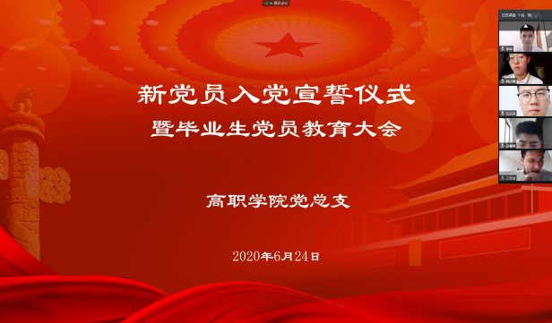 为加强毕业生党员的党性教育,激励他们在毕业后的新征途中能够勇于担当,不懈奋斗,6月24日下午,高职学院党总支举行新党员入党宣誓仪式暨毕业生党员教育大会。高职学院党总支书记陆永贤、学生工作负责人赵静、学生党支部书记和全体毕业生党员参加。此次活动线上线下有机融合,党员教师及在沪学生党员在技术中心207进行,其他毕业生党员通过腾讯会议线上同步参与。