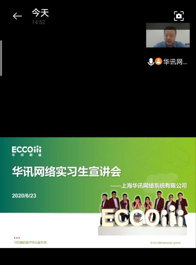 为提升同学们就业技能,加深行业认识,2020年6月23日下午两点,电子信息学院迎来了2021届毕业生的首场空中宣讲会。上海华讯网络系统有限公司技术经理谷嵩、存储技术经理彭志云担任主讲嘉宾,就业辅导员青静老师为主持人。上海华讯网络系统有限公司是一家新IT综合服务商,我院与该企业一直保持良好的合作关系,并签署了学分置换等校企合作协议。截止到目前,已有22名信息学子被该公司录用,同学们的优异表现受到了企业的一致好评。