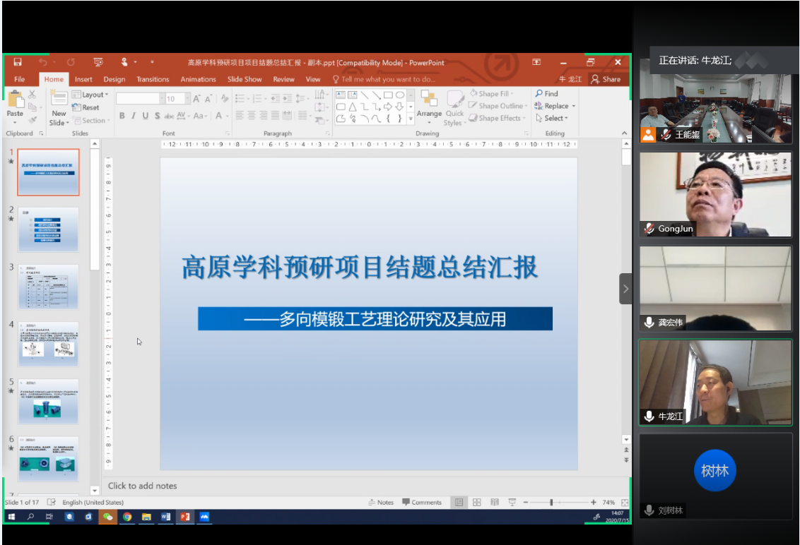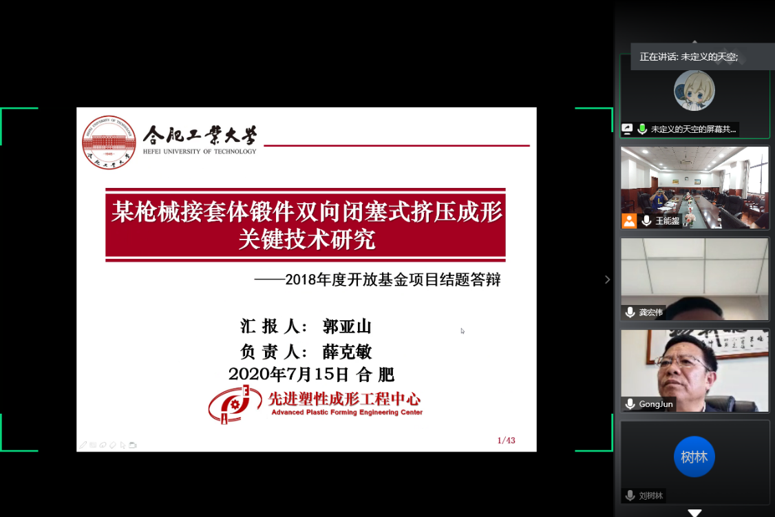 会上,辛教授介绍了专家组成员、立项背景及会议流程;验收专家组组长刘树林教授组织了各个项目的验收评审工作。先后进行了“阀体多向模锻成形工艺研究”等6项预研基金项目和“某枪械接套体锻件双向闭塞式挤压成形关键技术研究”等2项开放基金项目的验收答辩。待项目答辩结束后,刘树林教授组织专家组成员对各项目进行评审打分,给出验收是否通过的结论。项目验收评审结束后,辛教授进行了会议总结,并代表学科向与会专家表示感谢。