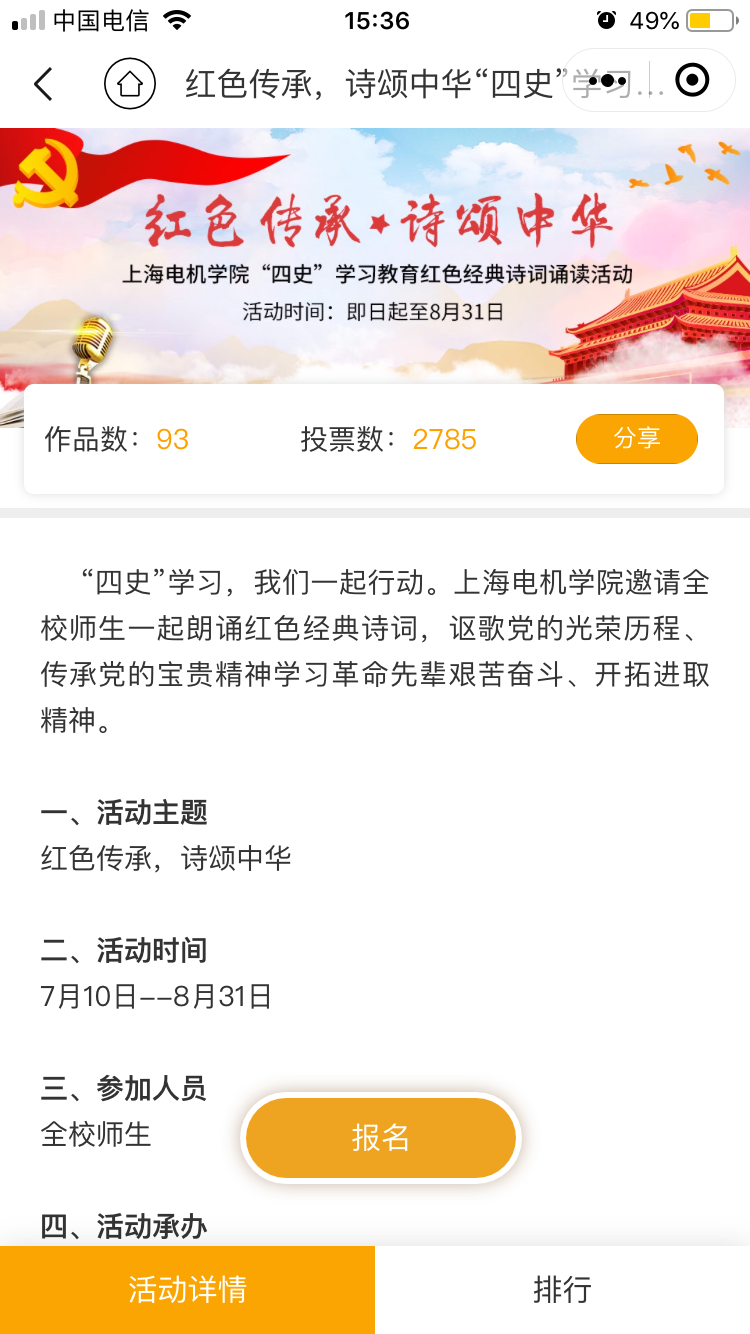 当天,体育教学部党员同志们还积极响应校党委的“四史”学习教育红色经典诗词诵读活动,集中时间完成了“红色经典诗词”云诵读,来深情讴歌党的光荣历程、传承党的宝贵精神、坚定永远跟党走的信念。(王琤)