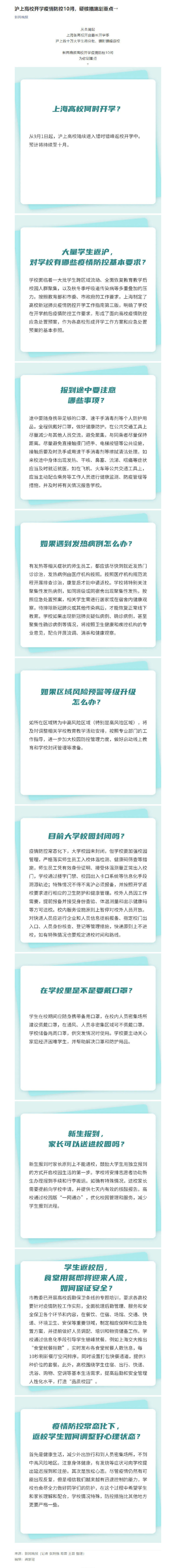 沪上高校开学疫情防控10问,硬核措施划重点→