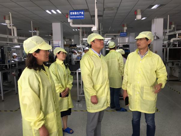 会后,在俞雪峰副总经理的引导下,机械学院一行老师参观了企业工厂。(王洁)