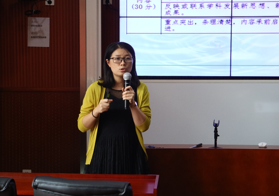 文理学院赵付丽老师在本届市赛中荣获自然科学基础学科组二等奖,她的参赛课程是《大学物理》。赵老师首先和大家进行了交流。赵老师认为参赛课程的教学内容选取十分重要,首先要注重学术性,选取与科技发展密切相关并贴近实际的案例,理论联系实际将课程讲授地更加灵活生动。在教学设计上,要体现整体性、主体性和科学性原则,达到“格物致理,乐学善用”的良好成效。教学反思要着重体现自己的教学思想和教育理念。