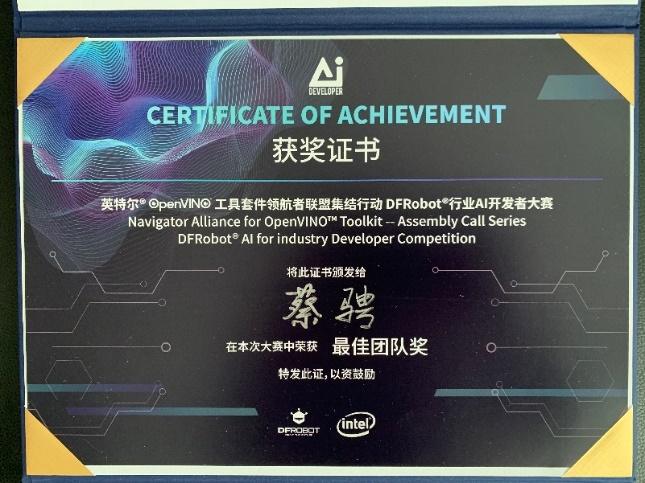 暑假期间,蔡骋教授指导的研究生团队,在面向智能制造中人机协同的需求基础上,研究基于人工智能的机械臂控制,获“慧科杯-人工智能应用创新挑战赛”三等奖。与此同时,蔡骋教授团队研发的数据驱动式的智能抓握算法获得英特尔OpenVINO工具套件领航者联盟集结行动DFRobot行业AI开发者大赛最佳团队奖;蔡骋老师本人获得华为公司《人工智能导论》师资认证以及百度公司-中国科学院大学的百度人工智能菁英班优秀指导老师称号。(邢译方)