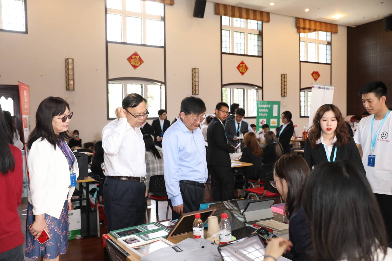 上午9点开幕式结束后进出口贸易模拟谈判就紧接着进行了。队员们布置好自己的产品展台,准备同评委模拟的采购商进行产品推荐和贸易谈判。比赛开始,有的展台一下子涌来数位采购商,有的展台却顾客寥寥,这在考验同学们的应变能力。大家既要能合理分工,同时接待几个采购商,也要能发挥自己的口才优势在场地内吸引顾客。谈判过程中,参赛同学用流利的英语和评委侃侃而谈,展现扎实的出口贸易知识和出色的英语能力。(李嘉阳)