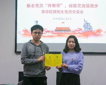为增强商学院研究生党员的凝聚力,促进研二与研一党员之间的交流,帮助研一党员更快、更好地融入组织,10月14日下午,商学院19级、20级研究生党员、发展对象、积极分子齐聚商学院党员活动室,开展“传帮带”交流活动。