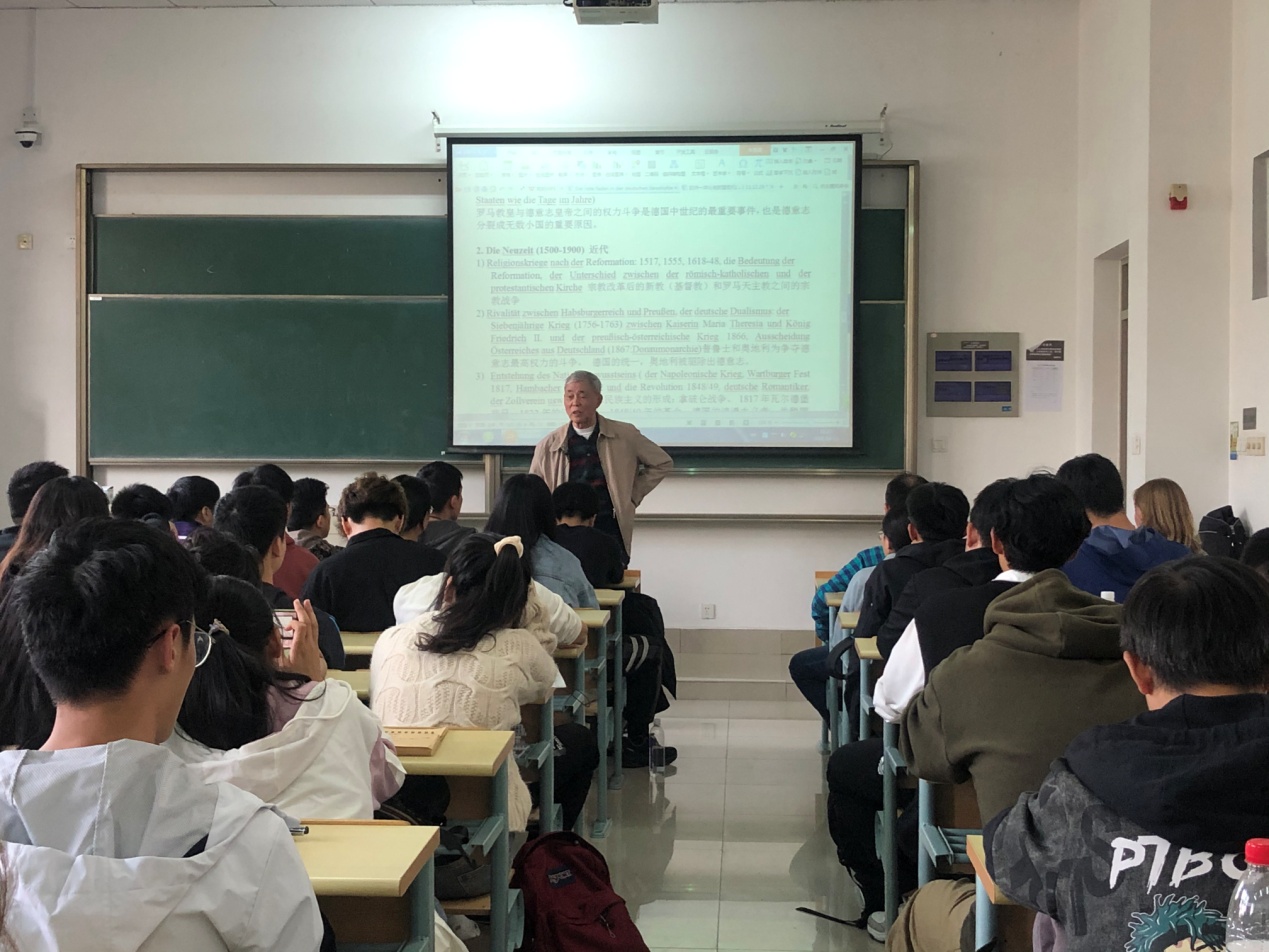应智能制造(中德)学院邀请,上海外国语大学德语系资深教授姚宝于2020年10月23日到我校,在D教102阶梯教室给中德合作专业和外国语学院德语系的同学们做了题为“21世纪是德国的欧洲还是欧洲的德国”的专题学术报告。