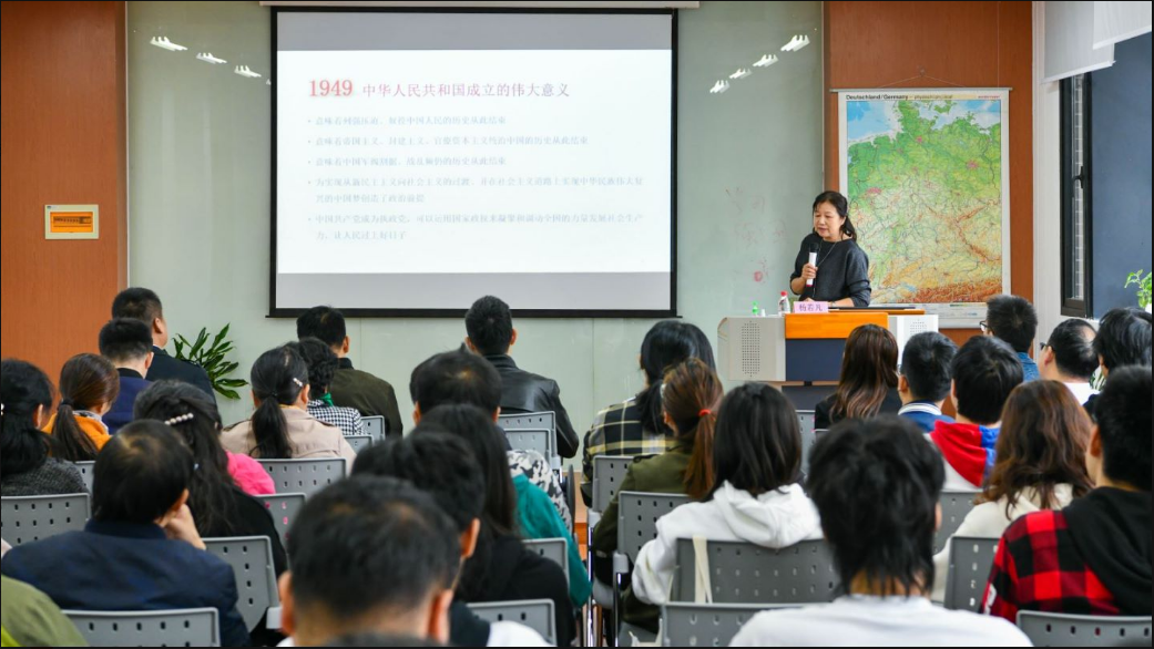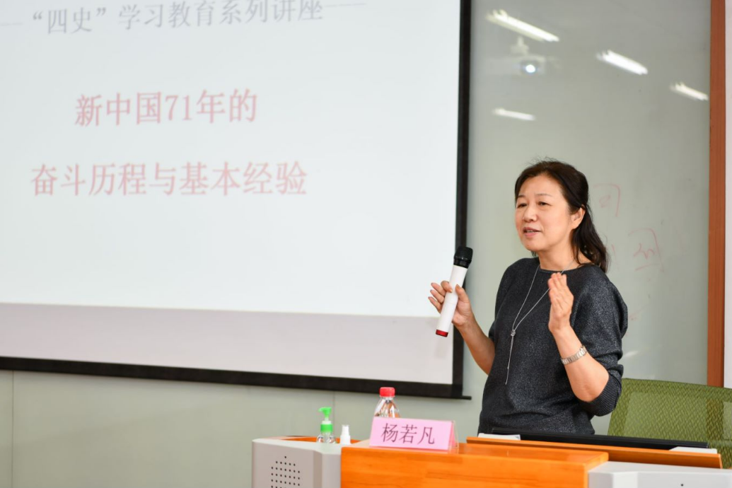 在党课报告中,杨若凡带领师生共同回顾了新中国成立71年来不断披荆斩棘、艰苦创业、厚积薄发、砥砺奋进的光辉历程,共同感悟了穿越71年后的今天,中国人民站在“两个一百年”历史交汇点上的自信、自豪、荣耀以及实现中华民族伟大复兴中国梦的鸿鹄之志!