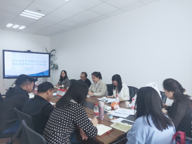 近期,电子信息学院通过毕业班班主任会、就业工作研讨会、分班级就业推进会等形式全院全员共同推进2021届毕业生就业工作。10月23日上午10:00,电子信息学院2021届毕业生就业工作推进会在信息楼506举行。学院党政领导、教学管理办公室主任、毕业班班主任以及全体辅导员老师出席了本次会议,会议由党总支副书记张珂老师主持。