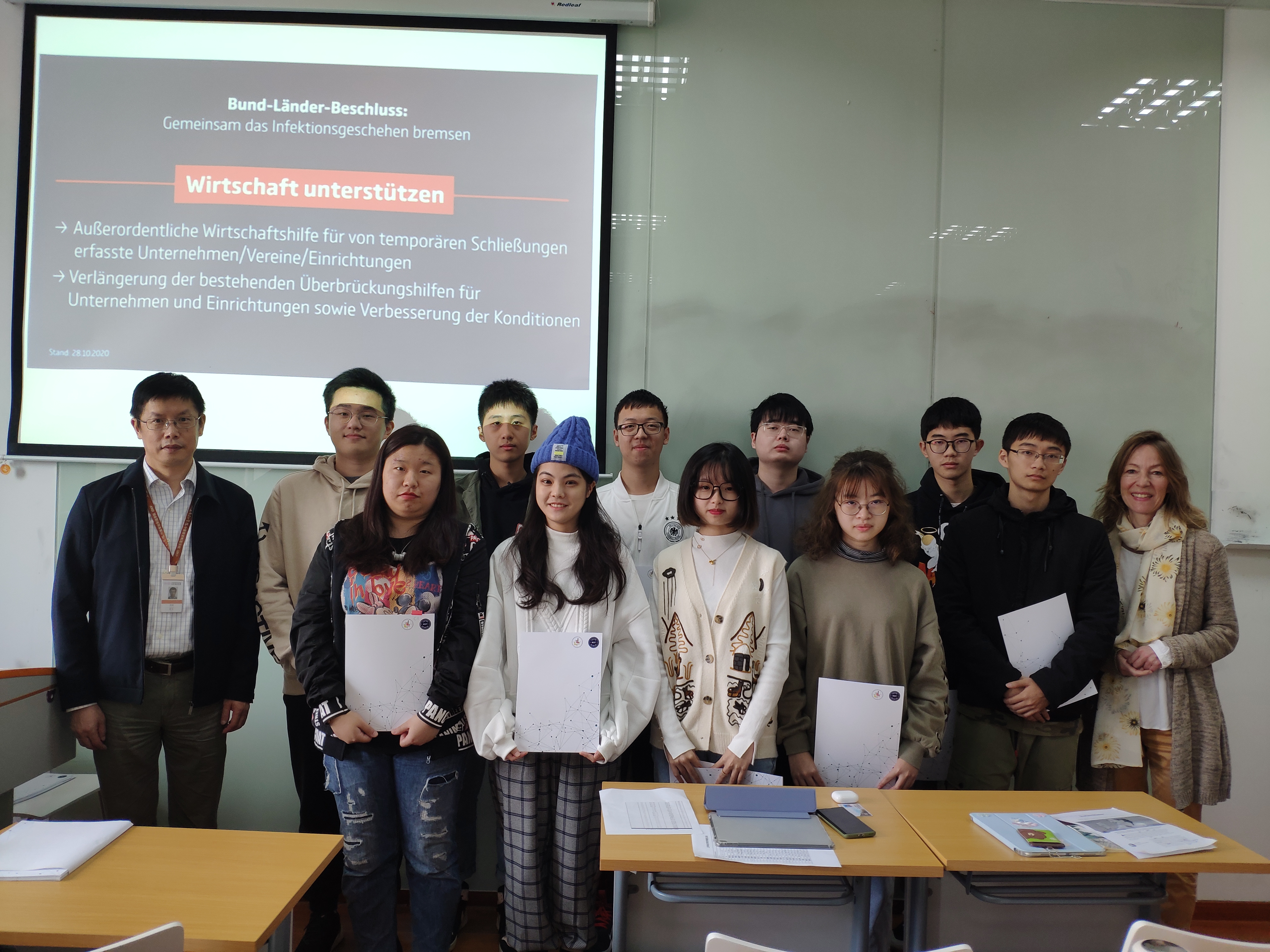 2020年11月5日,智能制造(中德)学院为通过德语考试的学生颁发C1证书