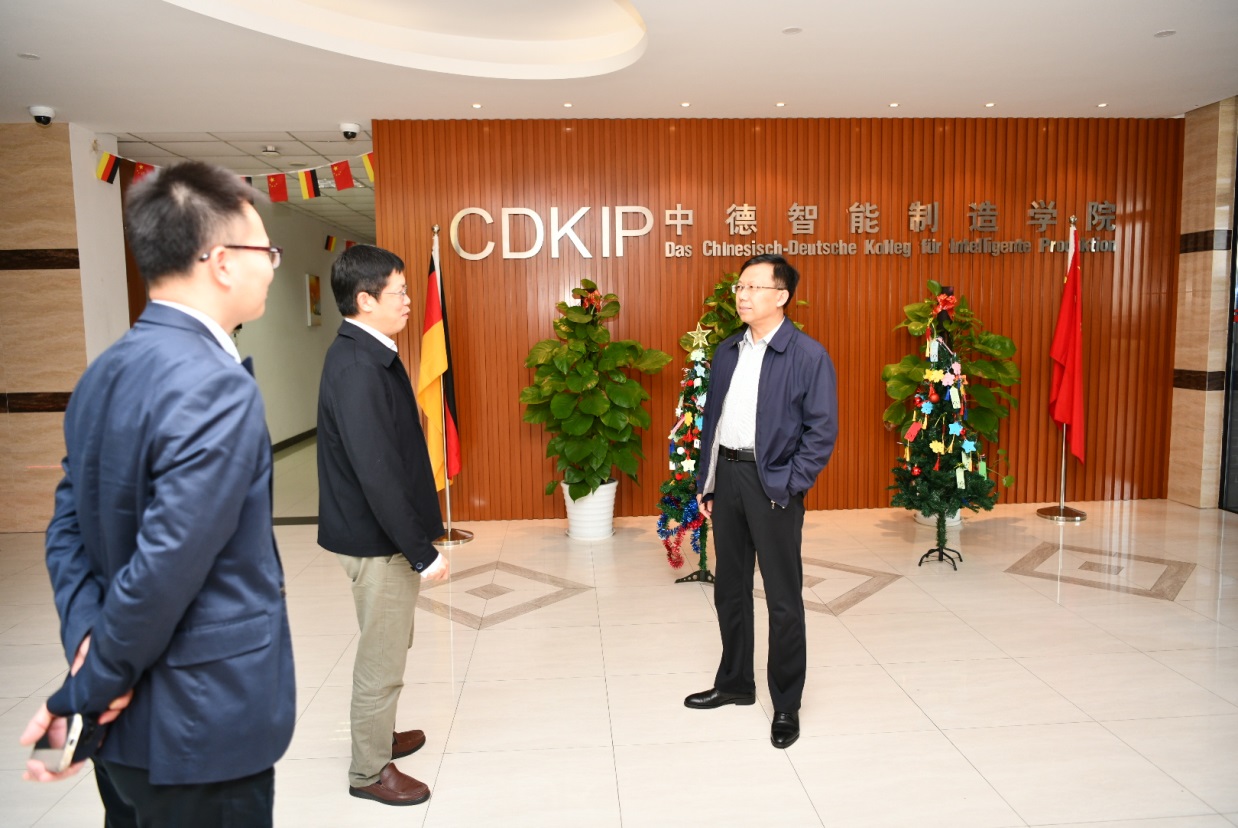 双方就科研、国际化合作、研究生等方面进行了深入的探讨和交流。会后,姜华平一行参观了商学院及中德智能制造学院。