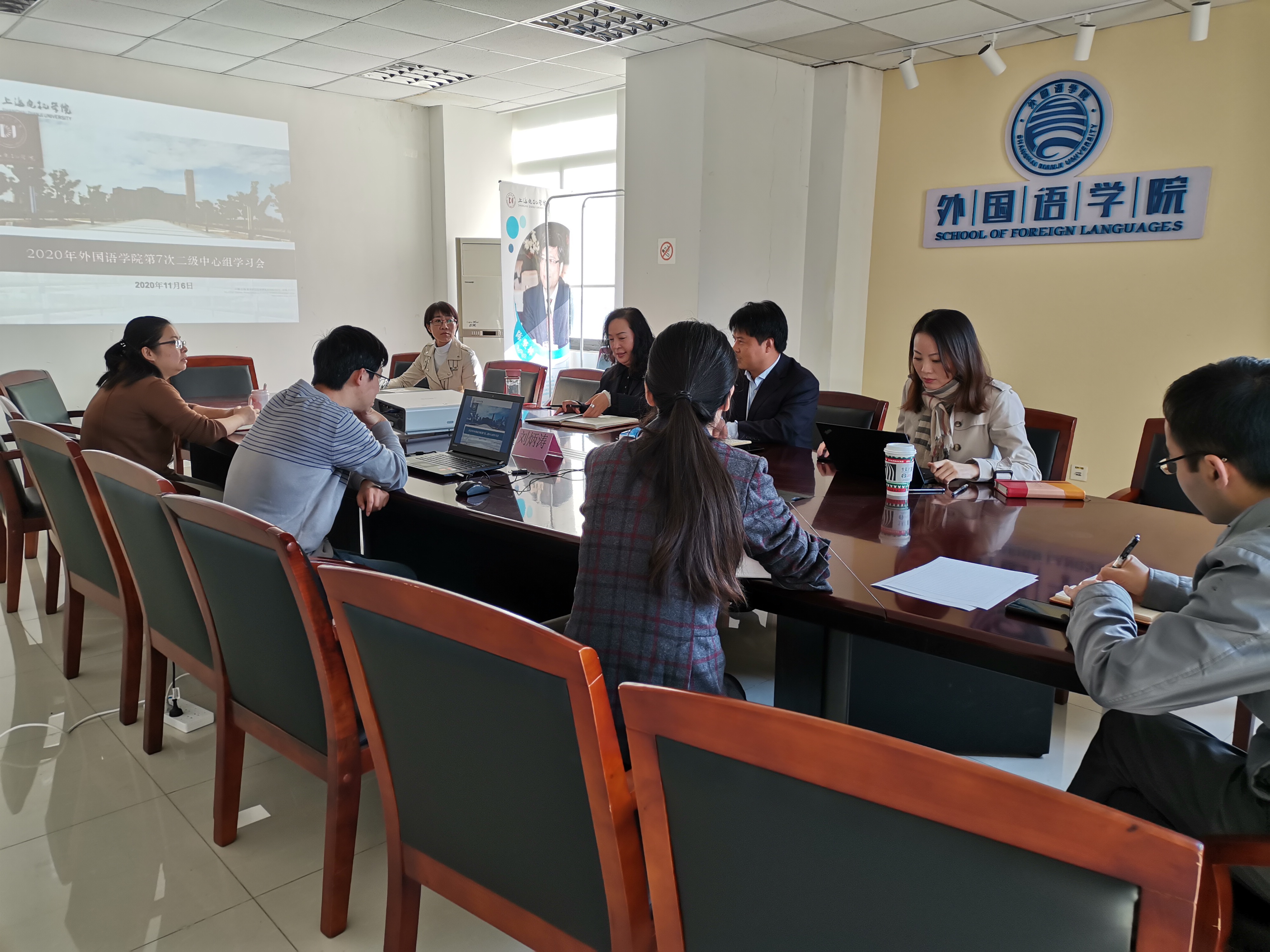 2020年11月6日下午,外国语学院二级中心组于临港校区文理楼413召开第七次集中学习活动,结合“四史”学习教育,深入学习《习近平谈治国理政》第三卷。外国语学院党政班子全体成员、党总支委员会委员、党支部书记参加学习活动,党总支书记金辉主持学习会,学习会还特邀学院思政指导员、我校马克思主义学院副教授刘炳涛做学习辅导报告。