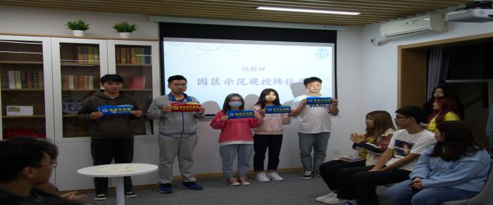 为表彰同学们的积极作为,在园区营造“勤学、勤奋、勤劳、勤俭”的优良作风,学院颁发了首批“勤学示范寝”、“勤奋示范寝”、“勤劳示范寝”、“勤俭示范寝”以及学生党员寝室门牌贴,并颁发了奖品。