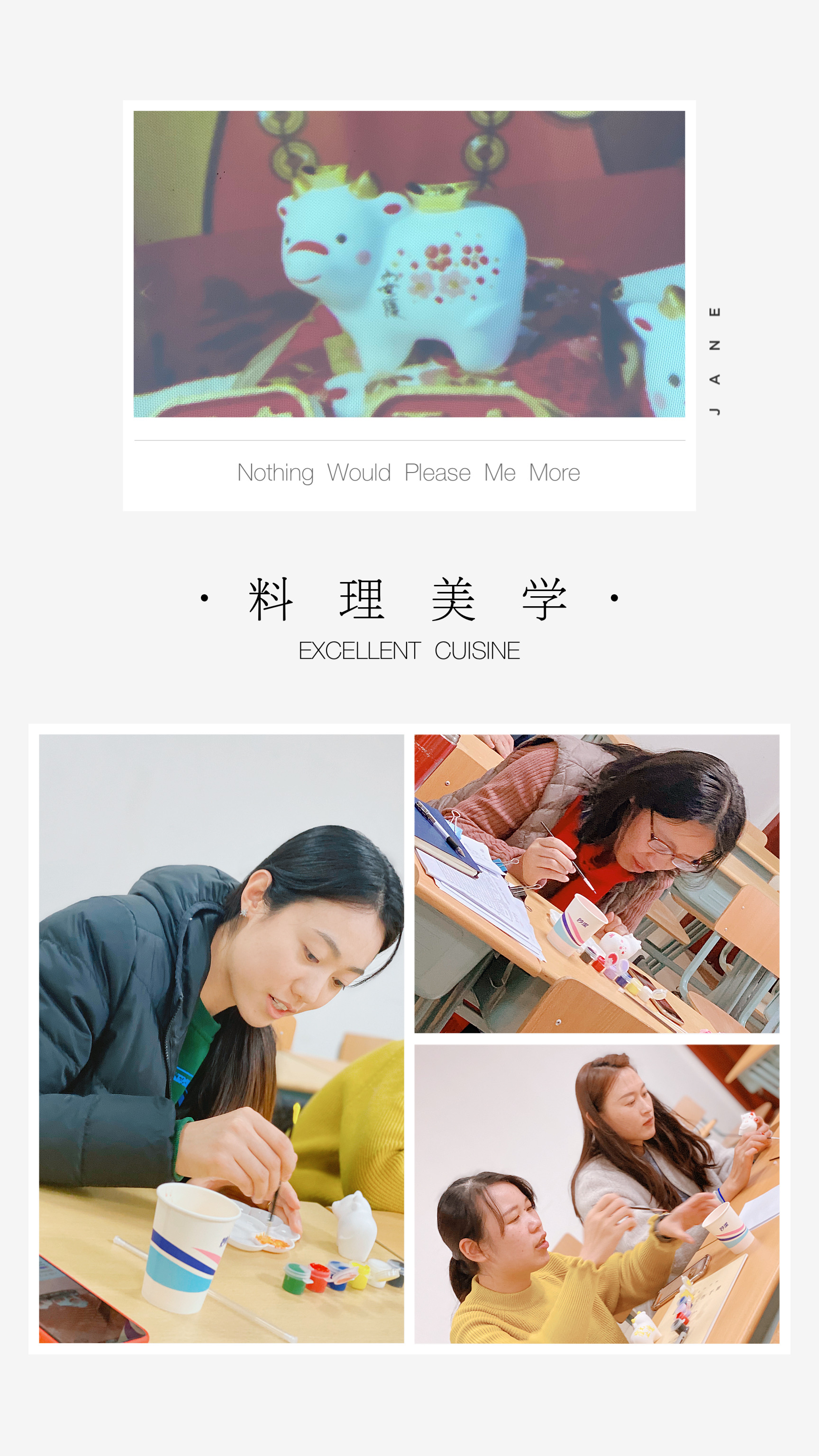 3月12日下午,体育教学部全体教师在党支部、分工会的组织下,于体育馆129多媒体教室开始教职工政治理论学习会暨“三八”国际妇女节动手制作活动。大家以亲自动手DIY彩绘牛陶的形式体验了中国传统手工艺者需要具备的创作、专注、细腻等素质。在专业人员的带领下,半小时后,一个个作品完美出炉,并互相拍照秀起来。体育教学部直属党支部将联合分工会一起,努力把教职工政治理论学习组织得更生动,更贴近教职工,争取更大学习成效。(闻豪杰)