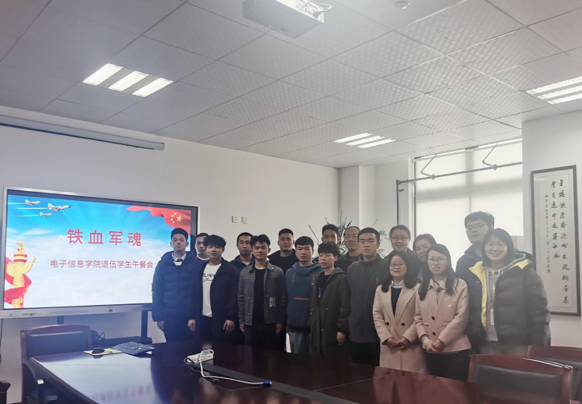 3月12日中午,电子信息学院召开退伍学生午餐会。学院党总支书记蒋建军、副书记副院长张珂、全体辅导员以及2020年退伍学生参加了会议。午餐会上,退伍同学分享了在部队的收获与体会,反映了退伍返校后学习和生活的适应情况。退伍学生们表示,军旅生活是一次宝贵的成长经历,加深了自己对责任、荣誉、使命、担当的理解,磨练了意志品质,提升了能力素质,无悔从军路;回到学校后已尽快适应学习生活环境,做好角色转换,保持积极向上,退伍不褪色。学生就退役后遇到的关于学业、就业、政策等方面的疑惑进行了交流,并为学校、学院的发展积极建言献策。(陈俊民)