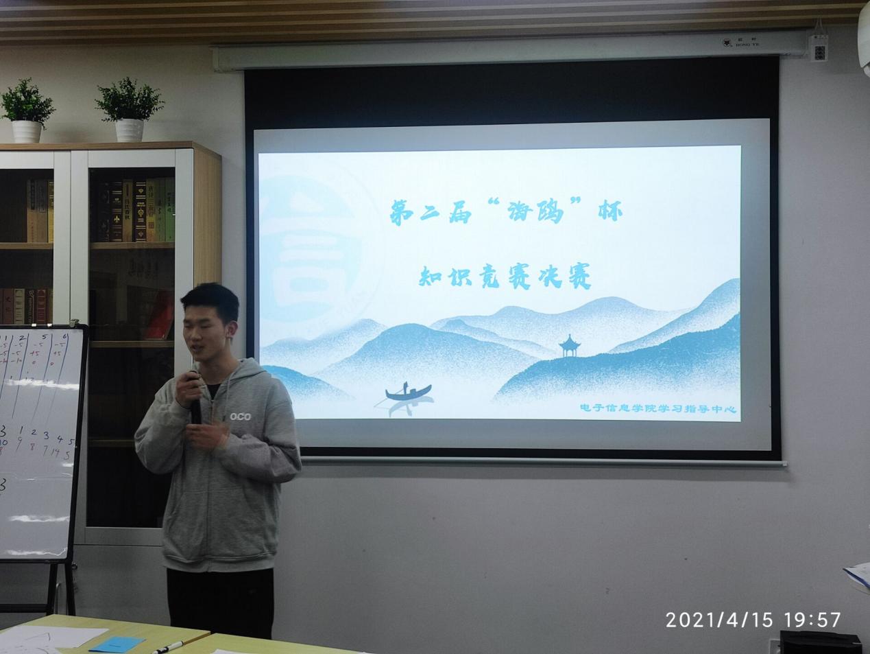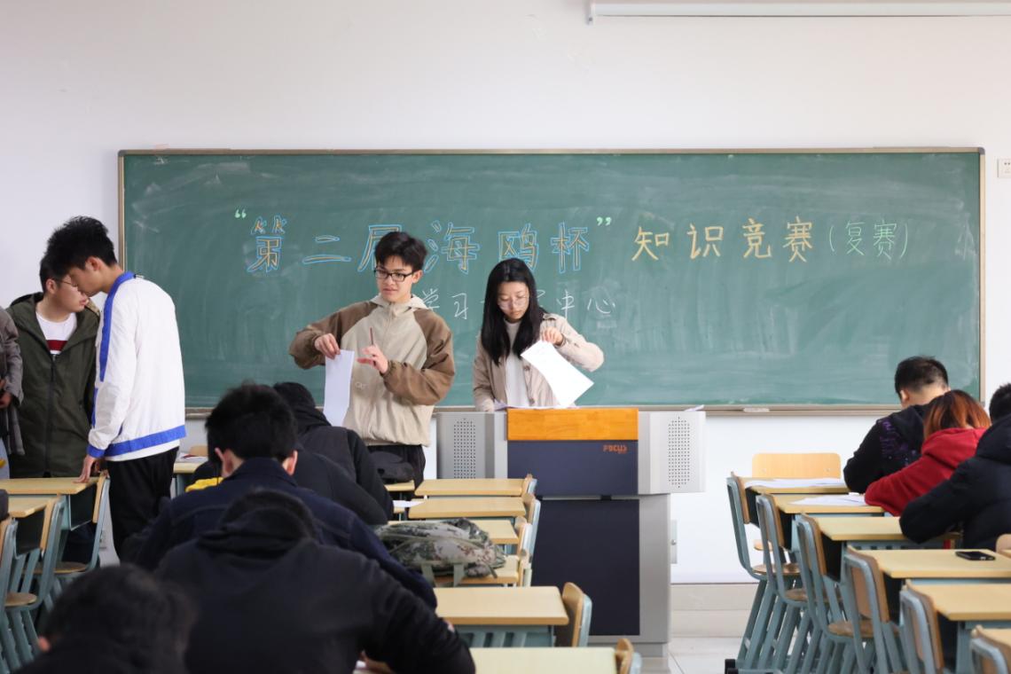 本次比赛分为初赛、复赛、决赛3个环节。初赛以超星学习通线上比赛的形式,共147人参加初赛,通过激烈的初赛角逐最终由90人以优异成绩进入海鸥杯复赛的选拔。4月2日进入复赛的同学们在比赛过程中枕戈待旦,蓄势而发。4月15日,通过复赛选拔出的27名同学进入了最终的决赛。在决赛现场,个人赛、团队赛与表演赛相结合,参赛选手进行了激烈的角逐。个人赛共计60余题,每名选手要亮出自己手中的答题板进行答题,工作人员并在计分板上记录成绩。每位参赛队员都不甘示弱,积极答题,现场观众们也纷纷参与现场答题的讨论中,全场的氛围达到了最高潮。经过层层比赛,最终来自计算机2014班的单帅迪同学获本次比赛冠军。