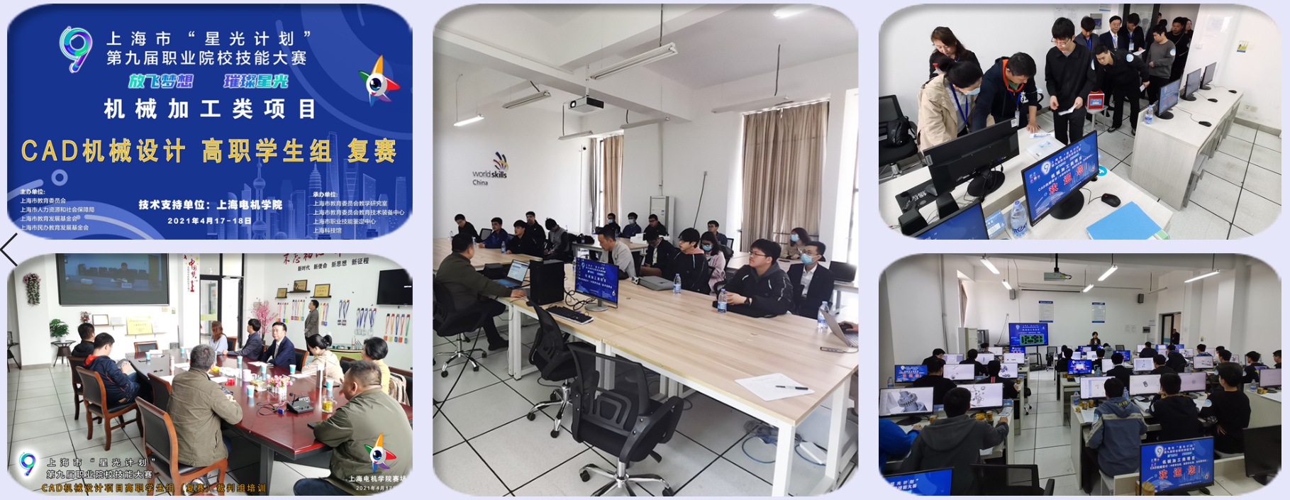 4月18日由上海市教育委员会、上海市人力资源和社会保障局、上海市教育发展基金会和上海市民办教育发展基金会共同主办的上海市“星光计划”第九届职业院校技能大赛“CAD机械设计”项目高职学生组复赛在我校举办。