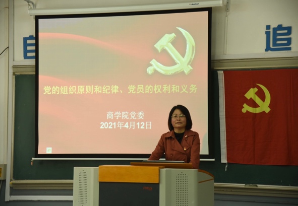 随后,商学院党委书记项军与党委副书记、副院长陈秀春对各位入党积极分子提出了指导意见。项军希望各位入党积极分子端正入党动机,提高党性认识,明确入党信心,积极配合党的各项工作,为伟大复兴中国梦而不断奋斗。陈秀春希望学员们在培训中要努力提高学习效果,加强学习理论知识,在培训中思考自身意义与价值,不断认清形势变化,以高标准,严要求来规范自身作为,从思想上更加成熟,以更好的精神面貌面对各项任务。